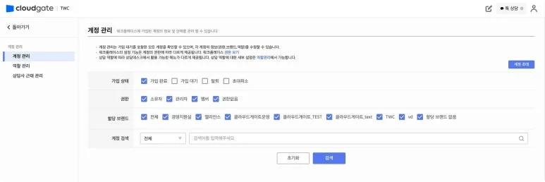 상담사/관리자가 회원가입을 완료했다면, 브랜드를 할당해 주세요. 브랜드 할당 시 멤버로 권한은 자동 설정되며, 권한에 따라 접근할 수 있는 메뉴도 달라집니다. 상담 역할도 변경할 수 있으니 참고해 주세요.