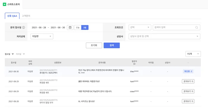 그러나, 사이트를 운영하는 입장에서 보면 관리 포인트가 많아지면 많아질수록 부족한 리소스에 의해 발생되는 관리 소홀 문제점들이 발생하곤 하죠. 하지만 네이버 스마트스토어에 입점해 판매를 하고 계신 셀러 분들께서는 클라우드게이트를 통해 1회 연동 만으로 네이버 스마트스토어 상품 QA/문의하기 영역을 한 번에 관리할 수 있어 보다 편리하게 운영할 수 있기에 업무 효율성도 높이지고, 매출 확대로 이어질 수 있는 기회로 활용할 수 있습니다.