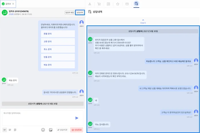 여러 브랜드 사이트를 운영하다 보면 대표 상담사가 각 담당자에게 상담 내용을 이관하여 처리하게 됩니다. 요즘은 챗으로도 문의가 많이 오기 때문에 기존에 어떤 내용으로 문의를 하셨는지 이관 받고 바로 답변을 할 수 있기 때문에 고객님의 문의가 여러 사람이 확인해야 하는 문의라도 상담 이력에서 확인하고 답변을 드리면 되니까 한 사람이 모든 답을 한 것처럼 보일 수 있게 보이더라고요. 그러다 보니 고객님 입장에서는 여러 문의 건을 한 번에 모두 해결할 수 있다는 편의에 대한 부분을 많이 느끼시는 것 같아요.