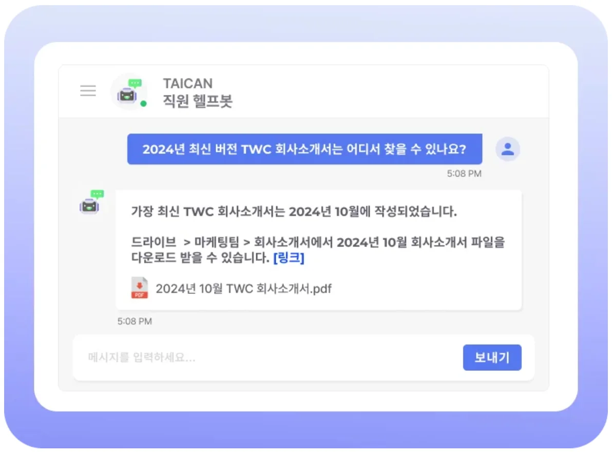 기업 자체 데이터 학습한 TWC 헬프봇으로 업무 시간 절감 및 업무 효율성 강화